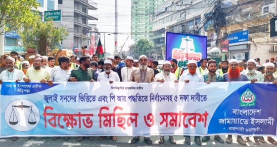 বাংলাদেশ জামায়াতে ইসলামী রাজশাহী মহানগরীর উদ্যোগে ‘জুলাই সনদের ভিত্তিতে এবং পি.আর পদ্ধতিতে নির্বাচনসহ ৫ দফা দাবিতে রাজশাহীতে জামায়াতের বিক্ষোভ সমাবেশ অনুষ্ঠিত হয়েছে। শুক্রবার (১০ অক্টোবর)...