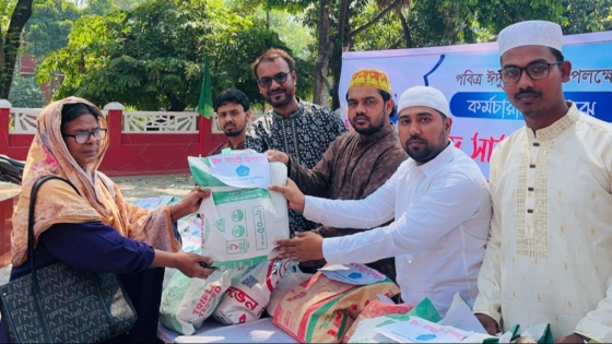 রাজশাহী কলেজের কর্মচারীদের মাঝে ঈদসামগ্রী বিতরণ করেছে ইসলামী ছাত্রশিবিরের রাজশাহী কলেজ শাখা।