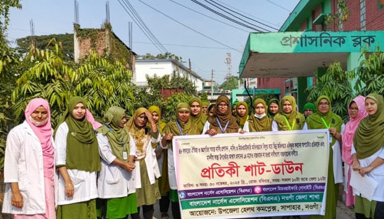 স্বতন্ত্র নার্সিং ও মিডওয়াইফারি অধিদপ্তরকে অন্য কোনো অধিদপ্তরের সঙ্গে একীভূত না করার দাবিসহ আট দফা দাবিতে নওগাঁর সাপাহারে প্রতীকি শাটডাউন কর্মসূচি পালন করেছে বাংলাদেশ নার্সেস...