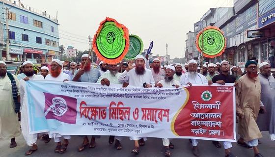 পাঁচ দফা দাবিতে নড়াইলে ইসলামী আন্দোলন বাংলাদেশের বিক্ষোভ মিছিল ও সমাবেশ অনুষ্ঠিত হয়েছে। সোমবার (২৭ অক্টোবর) বিকেলে শহরের পুরাতন বাসটার্মিনাল চত্বর থেকে মিছিল শুরু করে...