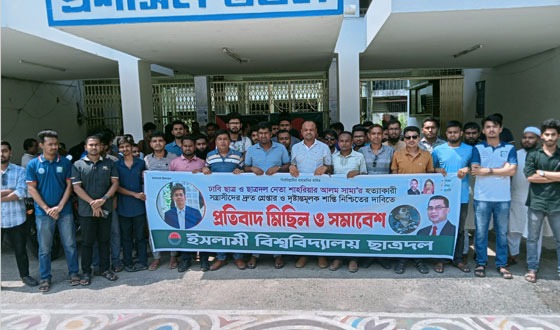 ঢাকা বিশ্ববিদ্যালয়ের ছাত্রদল নেতা শাহরিয়ার আলম সাম্য-এর হত্যাকাণ্ডে জড়িতদের গ্রেপ্তার, সুষ্ঠু বিচার ও নিরাপদ ক্যাম্পাসের দাবিতে ফের প্রতিবাদ মিছিল ও সমাবেশ করেছে ইসলামী বিশ্ববিদ্যালয় শাখা...