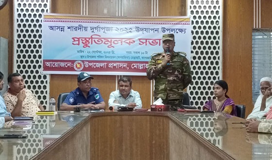 আসন্ন শারদীয় দুর্গোৎসব উপলক্ষে বাগেরহাটের মোল্লাহাট উপজেলা প্রশাসনের উদ্যোগে প্রস্তুতি সভা অনুষ্ঠিত হয়েছে। সোমবার (২২ সেপ্টেম্বর) সকাল সাড়ে ১০টায় উপজেলা পরিষদ মিলনায়তনে উপজেলার সকল পূজা...