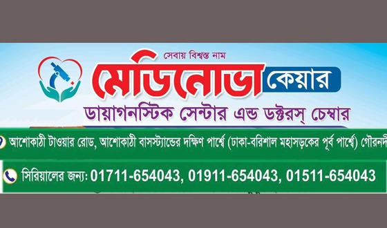 পবিত্র মাহে রমজানের বরকত ছড়িয়ে দিতে এবং সাধারণ মানুষের স্বাস্থ্যসেবা নিশ্চিত করতে মেডিনোভা কেয়ার ডায়াগনস্টিক সেন্টার এন্ড ডক্টরস চেম্বার নিয়ে এসেছে বিশেষ সুযোগ। বরিশালের গৌরনদী...