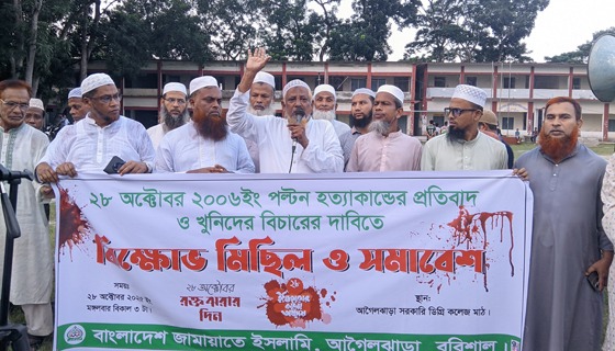 ২৮ অক্টোবর পল্টন হত্যাকাণ্ডের স্মৃতিকে স্মরণ করে এবং খুনিদের বিচারের দাবিতে বাংলাদেশ জামায়াতে ইসলামী, আগৈলঝাড়া উপজেলা শাখার উদ্যোগে একটি বিক্ষোভ মিছিল ও সমাবেশ অনুষ্ঠিত হয়েছে।...
