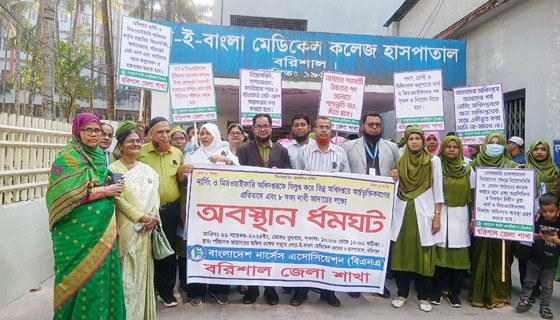 স্বতন্ত্র নার্সিং ও মিডওয়াইফারি অধিদপ্তরকে বিলুপ্ত করে ভিন্ন অধিদপ্তরে অন্তর্ভুক্তি করণের প্রতিবাদ এবং জাতীয় নার্সিং কমিশন গঠনসহ আট দফা দাবিতে অবস্থান ধর্মঘট পালন করেছে বাংলাদেশ...