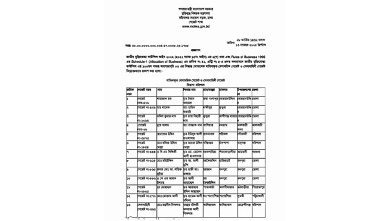 জাতীয় মুক্তিযোদ্ধা কাউন্সিল (জামুকা)-এর ১০০তম সভার সুপারিশের ভিত্তিতে বরিশালের বাবুগঞ্জ উপজেলার দুই ব্যক্তির মুক্তিযোদ্ধা তালিকাভুক্তি বাতিল করেছে মুক্তিযুদ্ধ বিষয়ক মন্ত্রণালয়।রাষ্ট্রপতির আদেশক্রমে গত ১৩ নভেম্বর উপসচিব...
