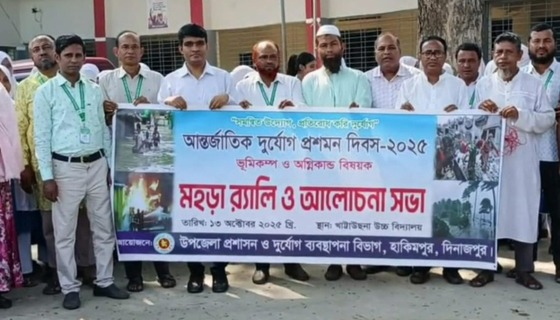 “সমন্বিত উদ্যোগ প্রতিরোধ করি দুর্যোগ”এই প্রতিপাদ্য বিষয়কে সামনে রেখে দিনাজপুর জেলা প্রশাসন ও জেলা দুর্যোগ ব্যবস্থাপনা বিভাগ এর আয়োজনে আন্তর্জাতিক দুর্যোগ প্রশমন দিবস-২০২৫ উপলক্ষে র্যালী,...