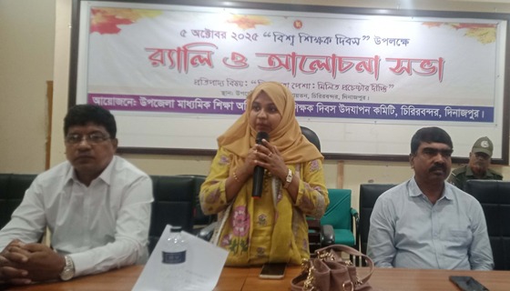দিনাজপুরের চিরিরবন্দরে বিশ্ব শিক্ষক দিবস উপলক্ষ্যে র্যালী ও আলোচনা সভা অনুষ্ঠিত হয়েছে। গতকাল ৫ অক্টোবর রবিবার বেলা ১১ টায় উপজেলা পরিষদ সম্মেলন কক্ষে উপজেলা মাধ্যমিক...