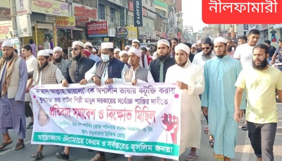 বাউল শিল্পি আবুল সরকারের ফাঁসির দাবীতে নীলফামারীতে বিক্ষোভ মিছিল ও সমাবেশ অনুষ্ঠিত হয়েছে। ২৯ নভেম্বর শহরের চৌরঙ্গি মোড়ে ওই প্রতিবাদ সমাবেশ অনুষ্ঠিত হয়।এতে বক্তব্য দেন মাওলানা...