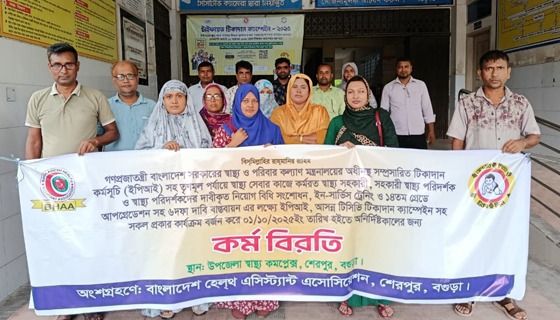 বগুড়ার শেরপুরে স্বাস্থ্য সহকারীদের কর্মবিরতির আজ ষষ্ঠ দিন চলছে। ৬ অক্টোবর সোমবার সকাল থেকে ছয় দফা দাবিতে তারা উপজেলা স্বাস্থ্য কমপ্লেক্সের সামনে অবস্থান নিয়ে কর্মসূচি...