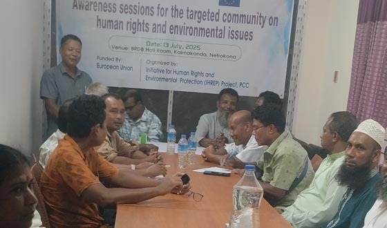 নেত্রকোনার কলমাকান্দা প্রেসক্লাব হলরুমে অনুষ্ঠিত হলো মানবাধিকার ও পরিবেশ সুরক্ষা প্রকল্প (চঈঈ)-এর উদ্যোগে আয়োজিত একটি ওরিয়েন্টেশন কর্মশালা। ।সোমবার সকালে আয়োজিত এই কর্মসূচিতে বিভিন্ন শ্রেণি-পেশার প্রতিনিধিদের...