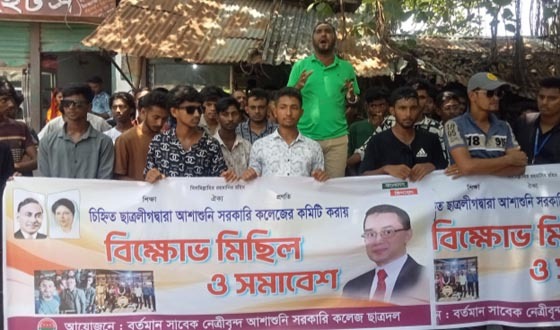 আশাশুনি সরকারি কলেজে চিহ্নিত ছাত্রলীগদ্বারা কমিটি দেওয়ায় বিক্ষোভ মিছিল ও সমাবেশ অনুষ্ঠিত হয়েছে। সোমবার বেলা ১১টায় কলেজের বর্তমান সাবেক ছাত্রদলের নেতৃবৃন্দ এ মিছিল ও সমাবেশের...