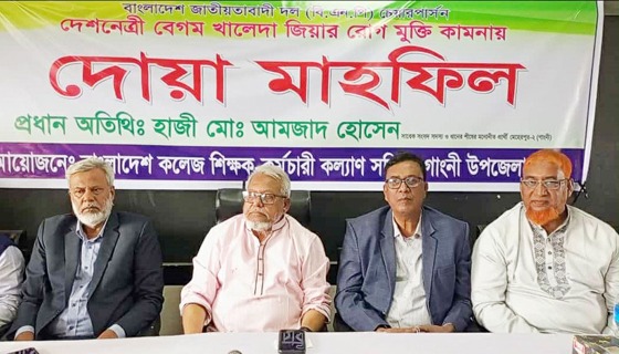 বাংলাদেশ জাতীয়তাবাদী দল বিএনপির চেয়ারপার্সন সাবেক প্রধানমন্ত্রী বেগম খালেদা জিয়ার পরিপূর্ণ সুস্থতা ও দীর্ঘায়ু কামনায় কোরআন তেলাওয়াত ও দোয়া অনুষ্ঠান সোমবার (১ ডিসেম্বর) কালিগঞ্জ শহীদ...
