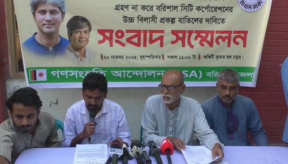 নাগরিক সমস্যা সমাধানের উদ্যোগ গ্রহন না করে বরিশাল সিটি করপোরেশনের (বিসিসি) উচ্চ বিলাসী প্রকল্প বাতিলের দাবিতে সংবাদ সম্মেলন করেছেন গণসংহতি আন্দোলন বরিশাল জেলা শাখার নেতৃবৃন্দরা।বৃহস্পতিবার...