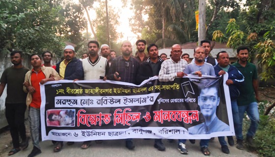 বাবুগঞ্জ উপজেলার জাহাঙ্গীরনগর ইউনিয়ন ছাত্রদলের সহ-সভাপতি মো. রবিউল ইসলাম-এর হত্যাকারীদের দ্রুত গ্রেফতার ও দৃষ্টান্তমূলক শাস্তির দাবিতে ফুঁসে উঠেছেন বাবুগঞ্জ উপজেলার বিভিন্ন পর্যায়ের ছাত্রদল নেতা-কর্মীরা।এরই অংশ...