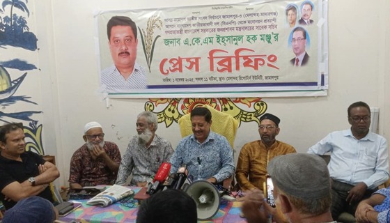 আগামী সংসদ নির্বাচনে জামালপুর-৩ (মেলান্দহ-মাদারগঞ্জ) সংসদীয় আসন থেকে বিএনপি’র মনোনয়ন প্রত্যাশী জনপ্রশাসন মন্ত্রণালয়ের সাবেক সচিব এ.কে.এম ইহ্সানুল হক মঞ্জু। ১ নভেম্বর দুপুরে মেলান্দহ রিপোর্টার্স ইউনিটিতে...