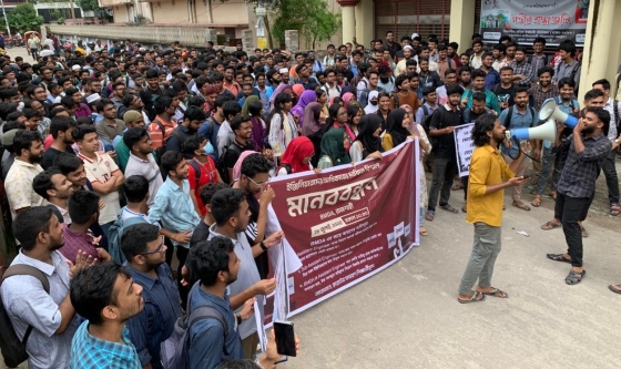 রাজশাহীতে বিএনপি ও সহযোগী সংগঠনের নেতাকর্মীদের বিরুদ্ধে চাঁদাবাজির মামলা করা মোস্তাফিজুর রহমান নামের এক আবাসন ব্যবসায়ীকে গ্রেপ্তারের দাবিতে মানববন্ধন হয়েছে। রোববার (২৭ জুলাই) বেলা ১১টায়...