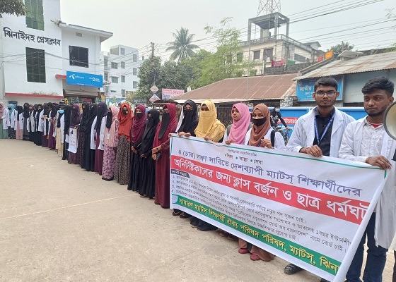 ১০ম গ্রেডে শুণ্যপদে নিয়োগ, নতুন পদ সৃজন, আন্তর্জাতিক মানদন্ড ও বিএমএন্ডডিসি স্বীকৃত ক্লিনিক্যাল বিষয়ে উচ্চশিক্ষাসহ ৪ দফা দাবীতে মানববন্ধন কর্মসূচী পালন করেছেন ঝিনাইদহ ম্যাটস’র শিক্ষার্থীরা।...