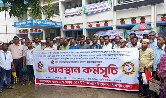 ছয় দফা দাবির প্রেক্ষিতে কেন্দ্রীয় কর্মসূচির অংশ হিসেবে চাঁদপুরে অবস্থান কর্মসূচি পালন করেছে বাংলাদেশ হেলথ এসিস্ট্যান্ট এসোসিয়েশন চাঁদপুর জেলা শাখা। বৈরি আবহাওয়াকে উপেক্ষা করে মঙ্গলবার...