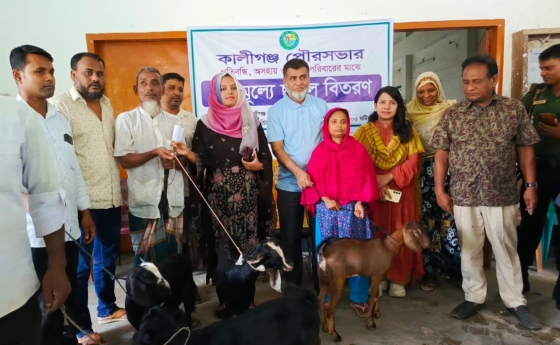গাজীপুরের কালীগঞ্জ পৌরসভার উদ্যোগে প্রতিবন্ধী, অসহায় ও দরিদ্র ১০টি পরিবারের মাঝে ছাগল বিতরণ করা হয়েছে।