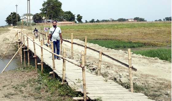 ফরিদপুরের চরভদ্রাসন উপজেলা পদ্মা নদীর অপর পারে চরহরিরামপুর ইউনিয়নের ভাটি শালেপুর গ্রামে খালের পানির উপর দিয়ে মাটির রাস্তা নির্মান করে যান চলাচল সচল করে দিয়েছেন...