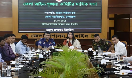 টাঙ্গাইলে জেলা আইন-শৃঙ্খলা কমিটির মাসিক সভা অনুষ্ঠিত হয়েছে। ১২ মে সোমবার সকালে জেলা প্রশাসক কার্যালয়ের সম্মেলন কক্ষে এই মাসিক সভা অনুষ্ঠিত হয়। টাঙ্গাইলের জেলা প্রশাসক শরীফা...