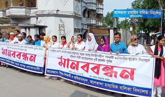 দীর্ঘ ভোগান্তির পর স্কুলে যাতায়াতের একমাত্র রাস্তাটি সংস্কারের দাবিতে মানববন্ধন করেছে বরিশাল নগরীর আলেকান্দা বালিকা মাধ্যমিক বিদ্যালয়ের শিক্ষক ও শিক্ষার্থীরা। মঙ্গলবার (৪ নভেম্বর) স্কুলের সামনের...