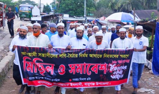আওয়ামী সন্ত্রাসীদের লাঠি-বৈঠার আঘাতে নিহতদের স্মরণে বরিশালের বাবুগঞ্জে মিছিল ও সমাবেশ করেছে বাংলাদেশ জামায়াতে ইসলামী বাবুগঞ্জ উপজেলা শাখা।রোববার (২৬ অক্টোবর) বিকেল ৪টায় বাংলাদেশ জামায়াতে ইসলামী...