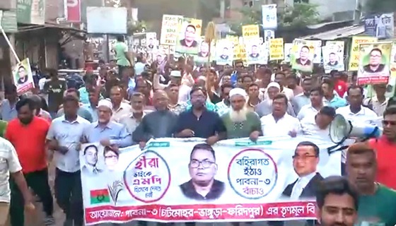 আগামী জাতীয় সংসদ নির্বাচনে পাবনা-৩ আসনে সাবেক উপজেলা চেয়ারম্যান হাসাদুল ইসলাম হীরাকে বিএনপি’র দলীয় প্রার্থী করার দাবিতে বিক্ষোভ করেছে উপজেলা ও পৌর বিএনপিসহ অঙ্গ সংগঠণ।...