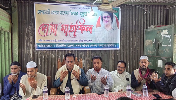 বিএনপি চেয়ারপারসন সাবেক প্রধানমন্ত্রী বেগম খালেদা জিয়ার দ্রুত সুস্থতা কামনায় টাঙ্গাইল জেলা দলিল লেখক কল্যাণ সমিতির উদ্যোগে দোয়া মাহফিল অনুষ্ঠিত হয়েছে। (৭ ডিসেম্বর) রোববার বাদ...