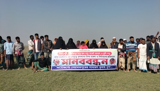 ভোলার দৌলতখানে মেঘনার বুকে জেগে ওঠা দুর্গম এলাকা নেয়ামতপুর চরে কৃষকদের উপর হামলা ও নির্যাতনের প্রতিবাদে মানববন্ধন করেছে ওই চরের নারী পুরুষ ও অসহায় কৃষকরা।...