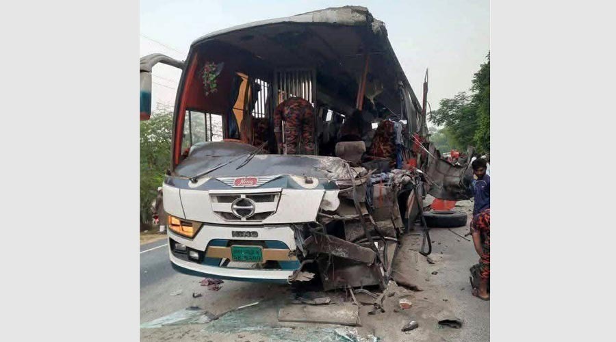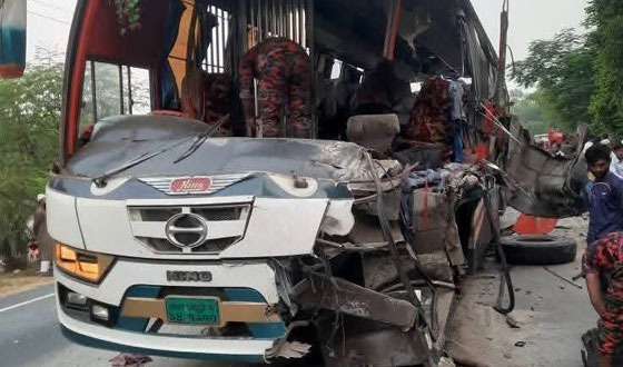 দিনাজপুরের ঘোড়াঘাট উপজেলায় দাঁড়িয়ে থাকা ট্রাকে দ্রুতগতির যাত্রীবাহী বাসের ধাক্কায় প্রাণ হারিয়েছেন ৫ জন। এই ভয়াবহ সড়ক দুর্ঘটনায় আহত হয়েছেন অন্তত আরও ১৫ জন। শনিবার...