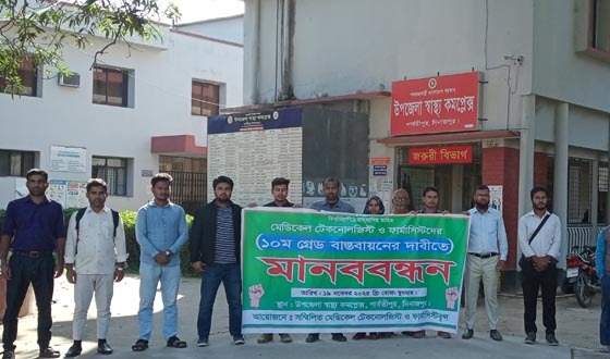 সারা দেশের ন্যায় বুধবার (১৯ নভেম্বর)বেলা।১১টায় 'উপজেলা স্বাস্থ্য কমপ্লেক্স, রাজিবপুর, কুড়িগ্রাম' এর সামনে স্থানীয় মেডিকেল টেকনোলজিস্টগন মানববন্ধন কর্মসূচী পালন করেছে। তাদের অভিযোগ গত তিন দশকের বেশি...