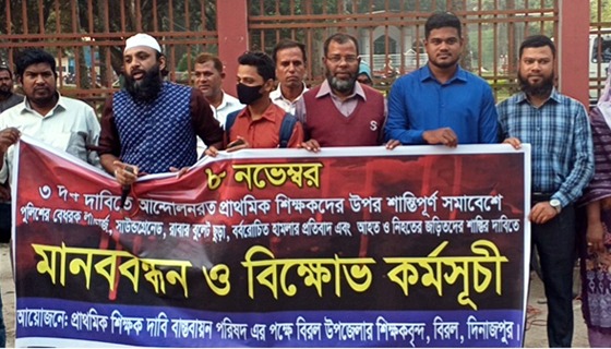 দিনাজপুরের বিরলে প্রাথমিক বিদ্যালয়ের শিক্ষকদের মানববন্ধন ও বিক্ষোভ কর্মসূচি অনুষ্ঠিত হয়েছে। সোমবার বিকালে উপজেলা পরিষদ সম্মূখ সড়কে প্রাথমিক শিক্ষক দাবি বাস্তবায়ন পরিষদ এর পক্ষে বিরল উপজেলার...