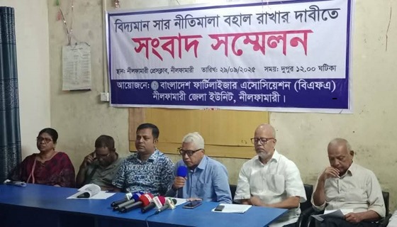 বিদ্যমান সার সরবরাহ নীতিমালা বহাল রাখার দাবিতে সংবাদ সম্মেলন করেছে বাংলাদেশ ফার্টিলাইজার এসোসিয়েশন (বিএফএ) নীলফামারী জেলা ইউনিটি। সোমবার নীলফামারী প্রেসক্লাব মিলনায়তনে এ সংবাদ সম্মেলনের আয়োজন...