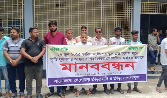 চাঁপাইনবাবগঞ্জের গোমস্তাপুরে ফুটবলার আব্দুল বাশিরকে লাঞ্ছিত করার প্রতিবাদে মানববন্ধন অনুষ্ঠিত হয়েছে। রোববার বেলা বারোটার দিকে উপজেলা নির্বাহী অফিসারের কার্যালয়ের সামনে এই মানববন্ধন অনুষ্ঠিত হয়। খেলোয়াড়...
