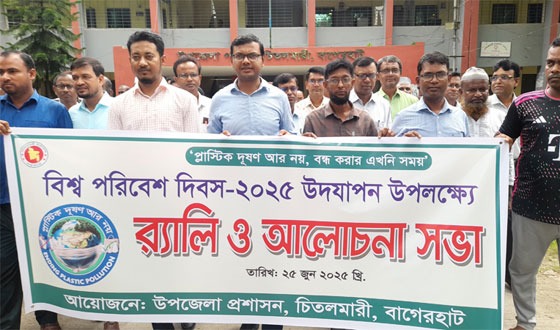 "প্লাস্টিক দূষণ আর নয় বন্ধ করার এখনি সময় " এই প্রতিপাদ্য বিষয় কে সামনে রেখে বাগেরহাটের চিতলমারী উপজেলায় বিশ্ব পরিবেশ দিবস ২০২৫ উদযাপন উপলক্ষ্যে র্যা...