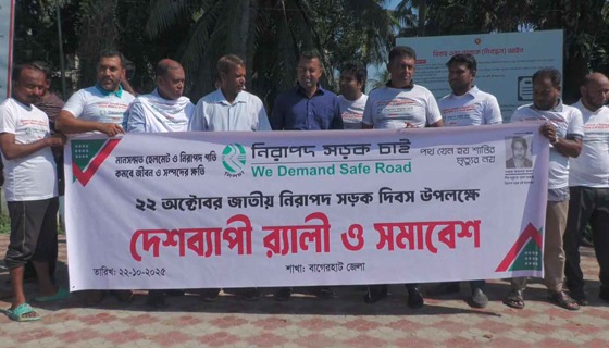 সারা দেশের মতো বাগেরহাটেও নানা আয়োজনে জাতীয় নিরাপদ সড়ক দিবস-পালিত হয়েছে। মঙ্গলবার (২২ অক্টোবর) সকাল সাড়ে ১০টায় বাগেরহাট জেলা প্রশাসকের কার্যালয়ের সামনে থেকে বাংলাদেশ সড়ক...