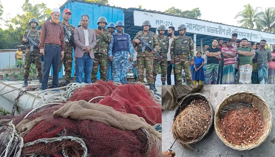 মৎস্য অধিদপ্তর, সেনাবাহিনী ও কোস্ট গার্ড বরিশালের হিজলা উপজেলার যৌথ অভিযানে পাঙ্গাসের ছোট ছোট পোনা ধরার বিপুল পরিমান ফাঁদ (বর্শি) জব্দ করা হয়েছে।রোববার (১৬ নভেম্বর)...