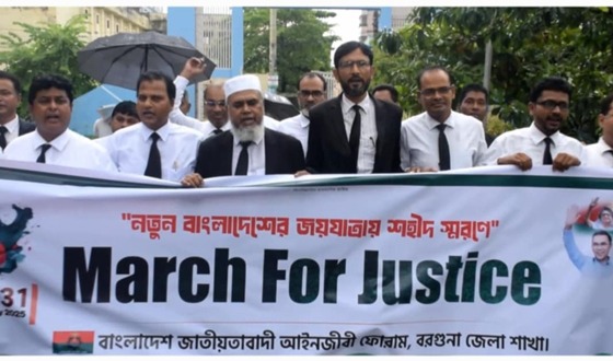 নতুন বাংলাদেশের জয়যাত্রায় শহীদ স্মরনে কেন্দ্রীয় কর্মসুচির অংশ হিসেবে সারা দেশের ন্যায় বরগুনায় মার্চ ফর জাষ্টিস কর্মসুচি পালিত হয়েছে। এ উপলক্ষে বাংলাদেশ জাতীয়তাবাদী আইনজীবী ফোরামের...