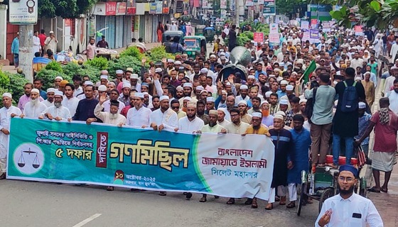 সিলেটে ৫ দফা দাবিতে জেলা প্রশাসকের মাধ্যমে প্রধান উপদেষ্টার বরাবরে স্মারকলিপি প্রদান করেছে বাংলাদেশ জামায়াতে ইসলামী। রোববার (১২ অক্টোবর) কেন্দ্রঘোষিত কর্মসূচির অংশ হিসেবে সিলেট নগরীর...
