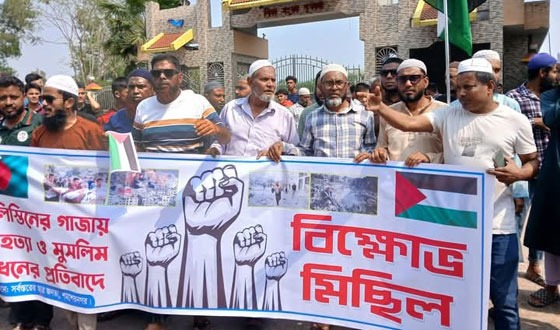 ফিলিস্তিনের গাজায় ইসরায়েলি বাহিনীর চলমান বর্বরতার প্রতিবাদে এবং ফিলিস্তিনিদের প্রতি সংহতি জানিয়ে সোমবার মৌলভীবাজারের কমলগঞ্জ উপজেলার বিভিন্ন স্থানে বিক্ষোভ মিছিল অনুষ্ঠিত হয়। গাজা উপত্যকায় ফিলিস্তিনি স্বাধীনতাকামী...