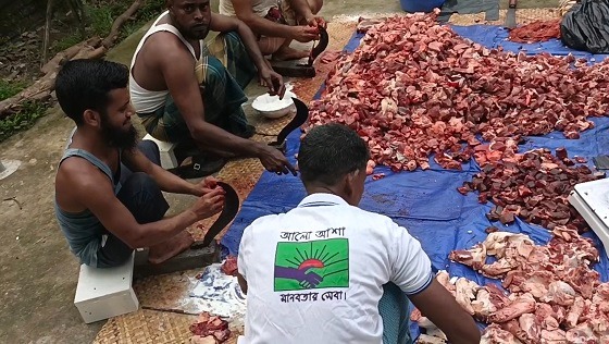 সৌদি আরবসহ মধ্যপ্রাচ্যের দেশগুলোর সঙ্গে মিল রেখে নোয়াখালীর সেনবাগে দুইটি গরু কোরবানী করে কোরবানীকৃত গোস্ব্তগুলোর গোস্ত শতাধিক অসহায় দুঃস্থ লোকজনের মাঝে বিতরণ করেছে স্বেচ্চাসেবী সংগঠন...