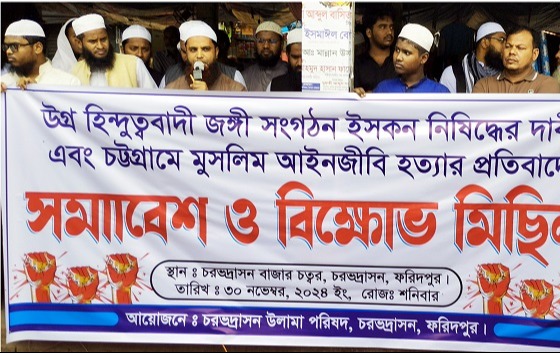 ফরিদপুরের চরভদ্রাসন উপজেলা সদর বাজারের মুক্তাঙ্গনে শনিবার সকাল ১০ টায় ইস্কন নিষিদ্ধের দাবীতে বিক্ষোভ ও সমাবেশ করেছেন স্থানীয় উলামা-পরিষদ। একই সাখে চট্রগ্রামে আইনজীবি হত্যার প্রতিবাদ...