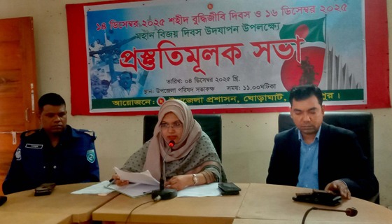 দিনাজপুরের ঘোড়াঘাটে ১৪ ডিসেম্বর শহীদ বুদ্ধিজীবি দিবস ও ১৬ ডিসেম্বর বিজয় দিবস পালন উপলক্ষে বৃহস্পতিবার বেলা ১১টায় উপজেলা হলরুমে এক প্রস্তুতিমুলক সভা অনুষ্ঠিত হয়। অনুষ্ঠানে...