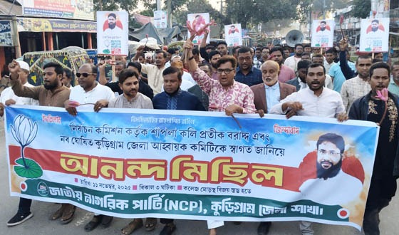 নির্বাচন কমিশন কর্তৃক শাপলা কলি প্রতীক বরাদ্দ ও নব ঘোষিত কুড়িগ্রাম জেলা আহ্বায়ক কমিটিকে স্বাগত জানিয়ে আনন্দ মিছিল ও সমাবেশ করেছে জাতীয় নাগরিক পার্টি (এনসিপি),...
