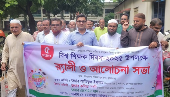 বিশ্ব শিক্ষক দিবস উপলক্ষে মুক্তাগাছা উপজেলার সকল শিক্ষকদের আয়োজনে বর্ণাঢ্য র্যালি ও আলোচনা সভার আয়োজন করা হয়।রোববার সকালে উপজেলা পরিষদ চত্তর থেকে একটি র্যালি মেইন...