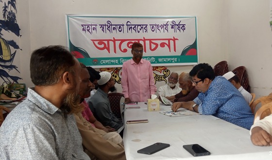 জামালপুরের মেলান্দহে স্বাধীনতা দিবসের তাৎপর্য শীর্ষক আলোচনা সভা ২৭ মার্চ বিকেল ৩টায় রিপোর্টার্স ইউনিটিতে অনুষ্ঠিত হয়। মেলান্দহ রিপোর্টার্স ইউনিটি এর আয়োজন করে। ইউনিটির সভাপতি-ইত্তেফাক সংবাদদাতা...