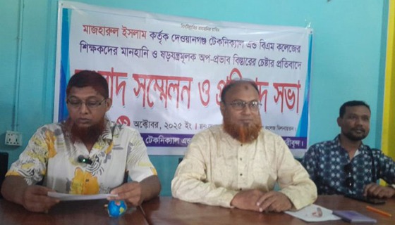 দেওয়ানগঞ্জ টেকনিক্যাল অ্যান্ড বি.এম কলেজের পক্ষ থেকে মাজহারুল ইসলামের উত্থাপিত অভিযোগের প্রতিবাদে এক সংবাদ সম্মেলন অনুষ্ঠিত হয়েছে। রোববার (১২ অক্টোবর) সকালে কলেজ প্রাঙ্গণে এই সংবাদ...