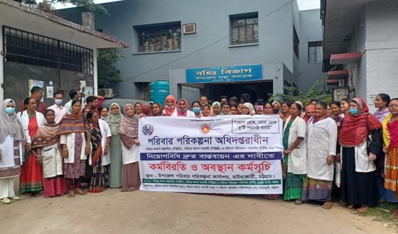 চট্টগ্রামের চন্দনাইশে বৃহস্পতিবার তৃতীয় দিনের মত নিয়োগবিধি বাস্তবায়নের দাবিতে কর্মবিরতি ও অবস্থান কর্মসূচি পালন করেন পরিবার পরিকল্পনাকর্মীরা। সকাল ১০ টা থেকে উপজেলা স্বাস্থ্য কমপ্লেক্সের সামনে...